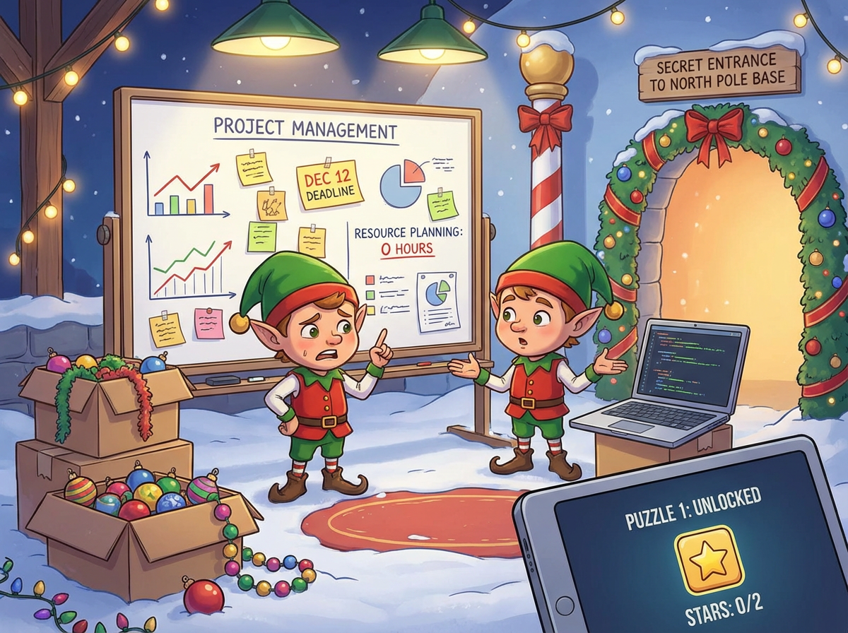 The good news is that they've discovered project management! This has given them the tools they need to prevent their usual Christmas emergency. For example, they now know that the North Pole decorations need to be finished soon so that other critical tasks can start on time. The bad news is that they've realized they have a different emergency: according to their resource planning, none of them have any time left to decorate the North Pole!